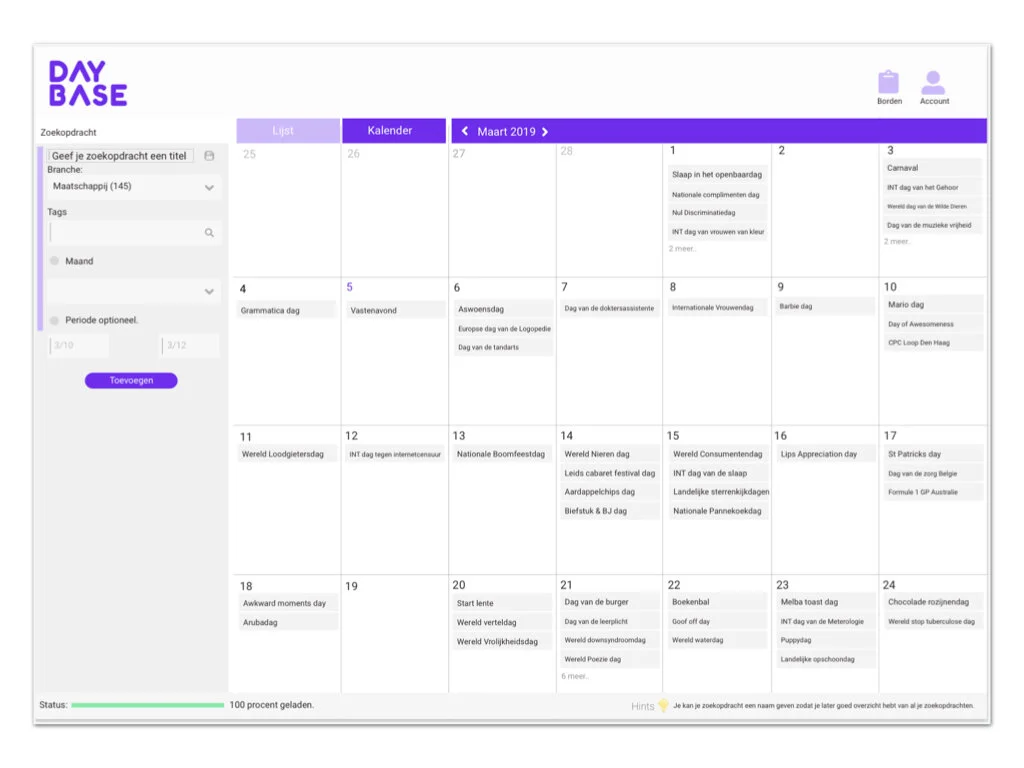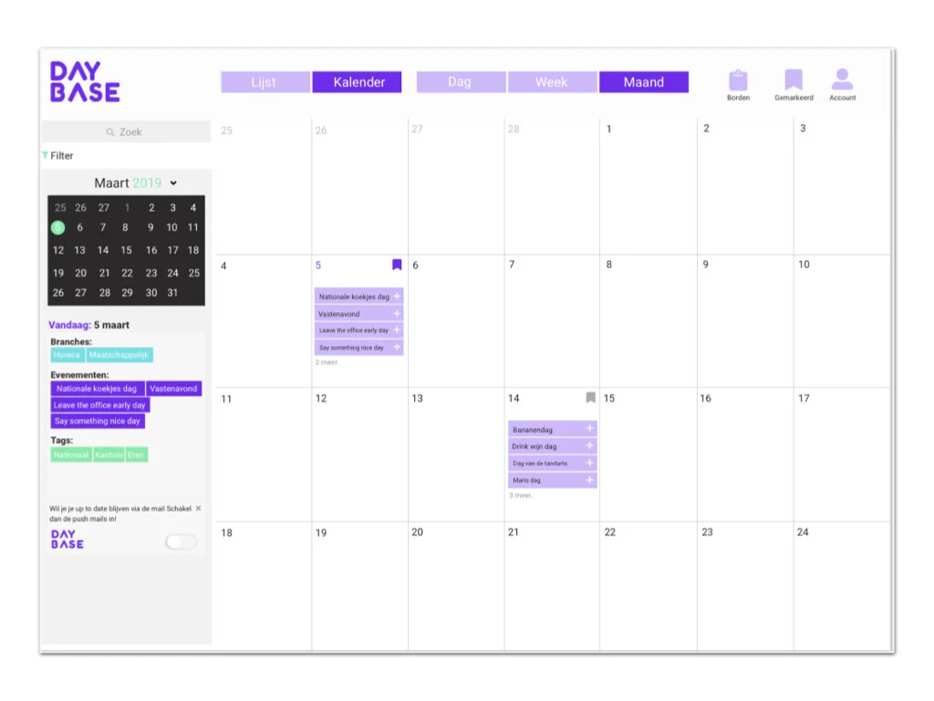Daybase: the marketing calendar for marketeers Slide 1 Slide 1 (current slide) Slide 2 Slide 2 (current slide) Slide 3 Slide 3 (current slide)